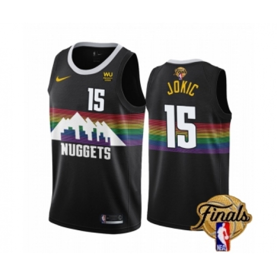 >Men's Denver Nuggets #15 Nikola Jokic Black 2023 Finals City Edition Stitched Basketball Jersey