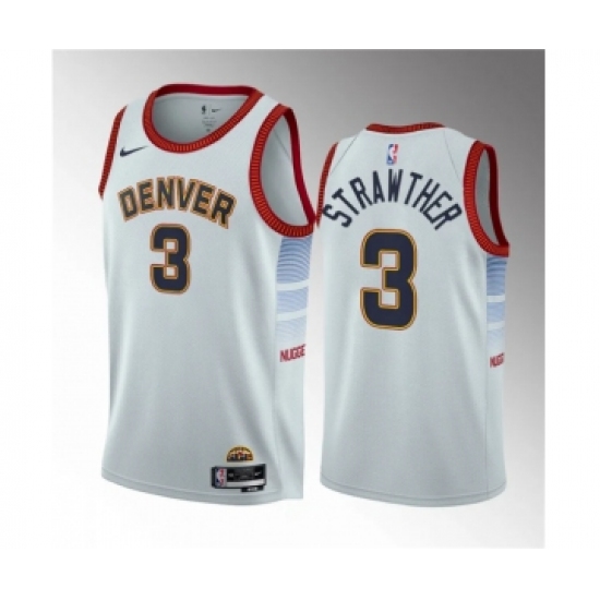 >Men's Denver Nuggets #3 Julian Strawther White 2023 Draft Icon Edition Stitched Basketball Jersey