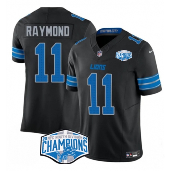 >Men's Detroit Lions #11 Kalif Raymond Black 2024 NFC North Champions F.U.S.E. Vapor Limited Stitched Jersey