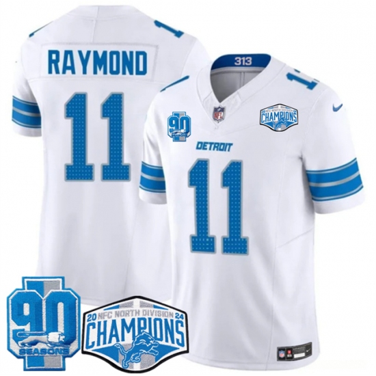 Men's Detroit Lions #11 Kalif Raymond White 2024 NFC North Champions 90th Anniversary F.U.S.E. Vapor Limited Stitched Jersey