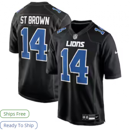 >Men's Detroit Lions #14 Amon-Ra St. Brown Nike Carbon Black Carbon Fashion Jersey