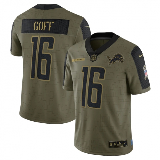 >Men's Detroit Lions #16 Jared Goff Nike Olive 2021 Salute To Service Limited Player Jersey