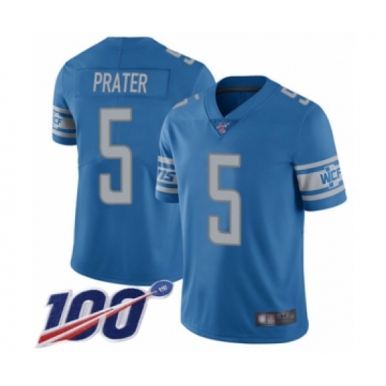 Men's Detroit Lions #5 Matt Prater Blue Team Color Vapor Untouchable Limited Player 100th Season Football Jersey
