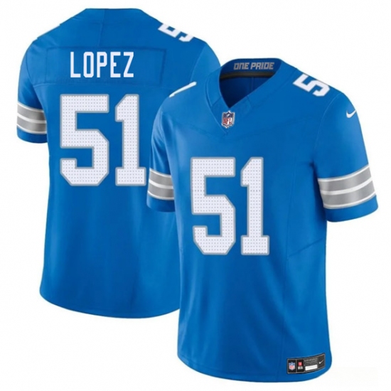 Men's Detroit Lions #51 Roy Lopez Blue 2025 F.U.S.E. Vapor Limited Football Stitched Jersey