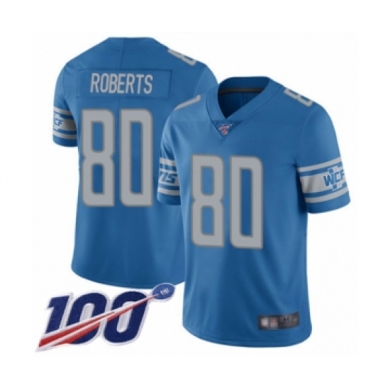 >Men's Detroit Lions #80 Michael Roberts Blue Team Color Vapor Untouchable Limited Player 100th Season Football Jersey