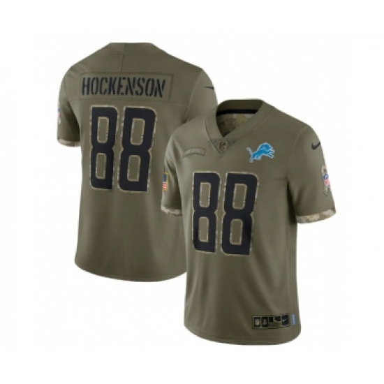 >Men's Detroit Lions #88 T. J. Hockenson 2022 Olive Salute To Service Limited Stitched Jersey