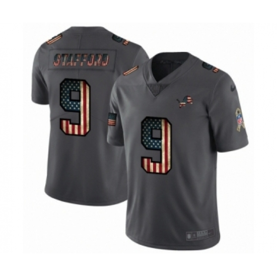>Men's Detroit Lions #9 Matthew Stafford Limited Black USA Flag 2019 Salute To Service Football Jersey