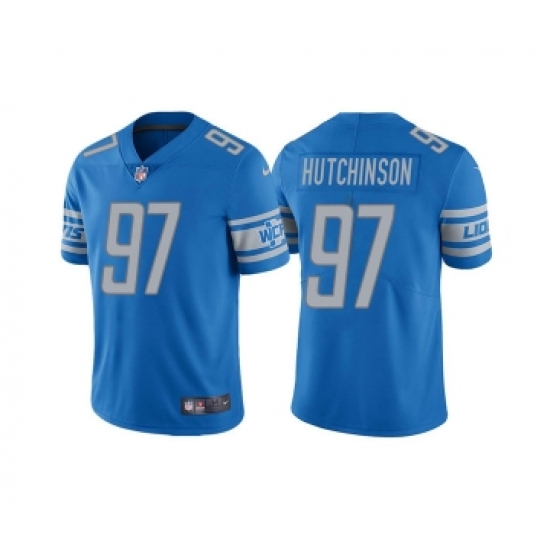 >Men's Detroit Lions #97 Aidan Hutchinson Blue Vapor Untouchable Limited Stitched Jersey