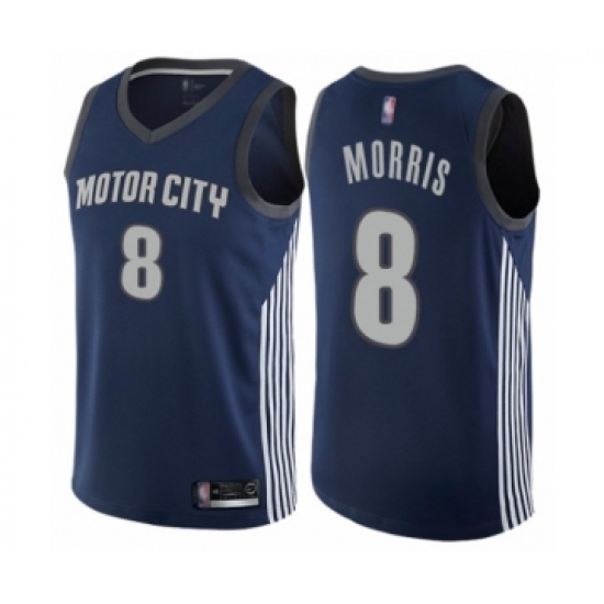 Men's Detroit Pistons #8 Markieff Morris Authentic Navy Blue Basketball Jersey - City Edition