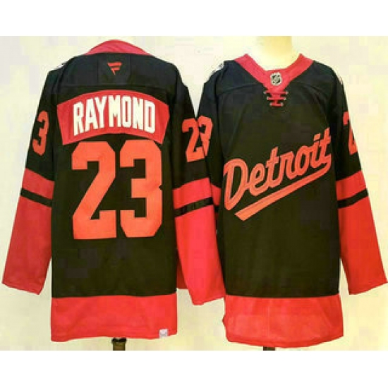 >Men's Detroit Red Wings #23 Lucas Raymond Black 2025 Stadium Series Stitched Jersey