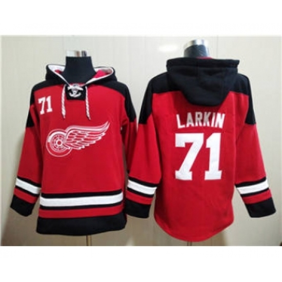 >Men's Detroit Red Wings #71 Dylan Larkin Red Ageless Must-Have Lace-Up Pullover Hockey Hoodie