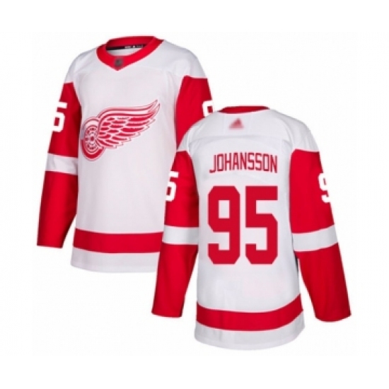 >Men's Detroit Red Wings #95 Albert Johansson Authentic White Away Hockey Jersey