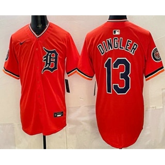 >Men's Detroit Tigers #13 Dillon Dingler Orange Limited Jersey