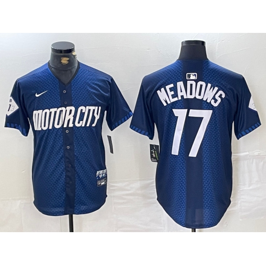 >Men's Detroit Tigers #17 Parker Meadows Navy 2024 City Connect Cool Base Limited Stitched Jersey