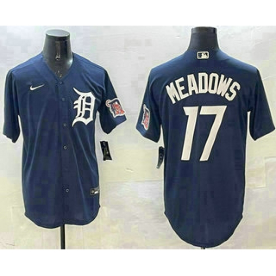 Men's Detroit Tigers #17 Parker Meadows Navy With Cool Base Stitched Jersey