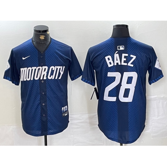 Men's Detroit Tigers #28 Javier Baez 2024 Navy City Connect Cool Base Limited Stitched Jersey