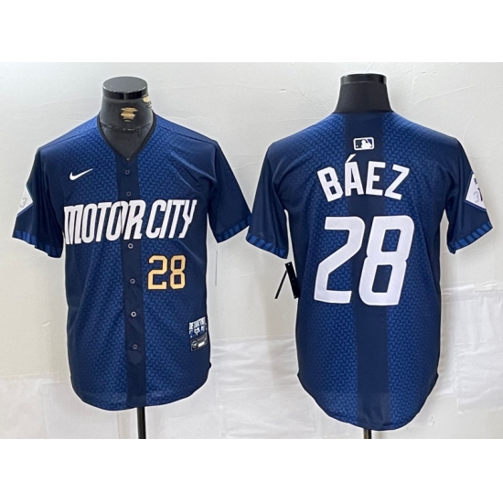 Men's Detroit Tigers #28 Javier Baez Number 2024 Navy City Connect Cool Base Limited Stitched Jerseys