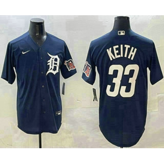 >Men's Detroit Tigers #33 Colt Keith Navy With Cool Base Stitched Jersey