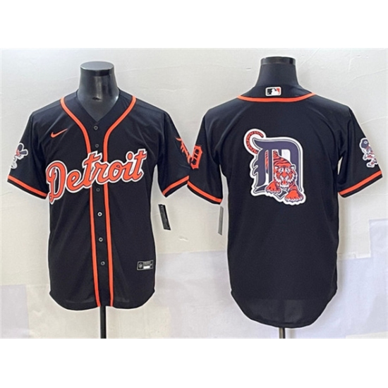 Men's Detroit Tigers Team Big Logo Black With Cool Base Stitched Baseball Jersey