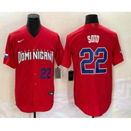 Men's Dominican Republic Baseball #22 Juan Soto 2023 Red World Classic Stitched Jerseys