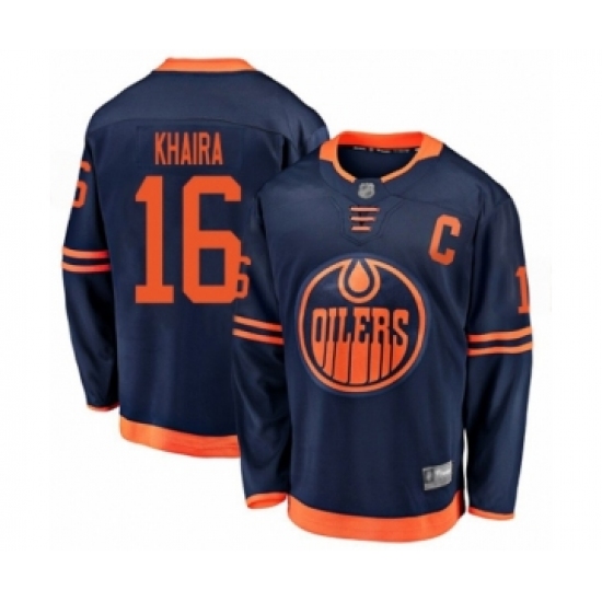 >Men's Edmonton Oilers #16 Jujhar Khaira Authentic Navy Blue Alternate Fanatics Branded Breakaway Hockey Jersey