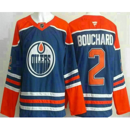 >Men's Edmonton Oilers #2 Evan Bouchard Blue Authentic Jersey
