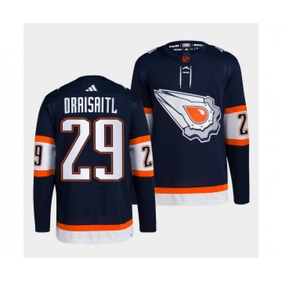 >Men's Edmonton Oilers #29 Leon Draisaitl Navy 2022-23 Reverse Retro Stitched Jersey