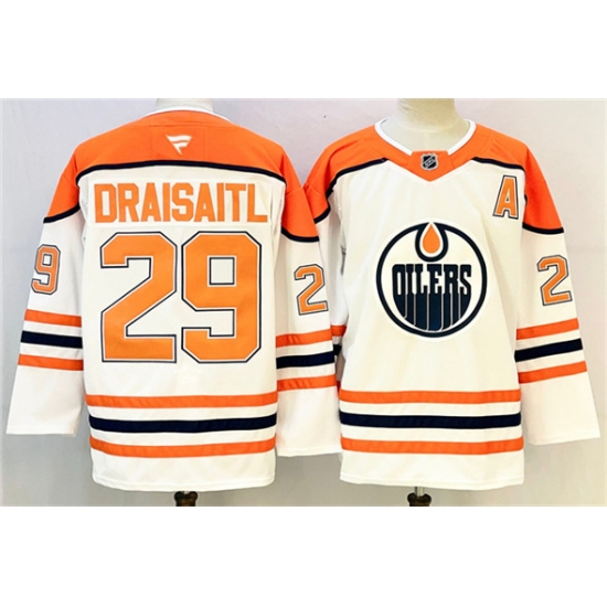 Men's Edmonton Oilers #29 Leon Draisaitl White Orange 2024-25 With A Stitched Jersey