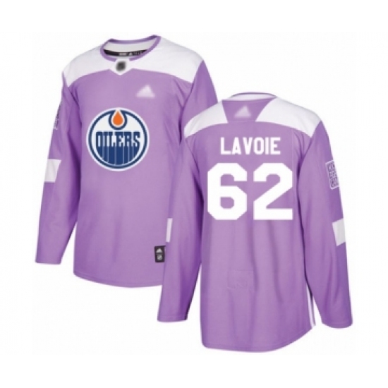 >Men's Edmonton Oilers #62 Raphael Lavoie Authentic Purple Fights Cancer Practice Hockey Jersey