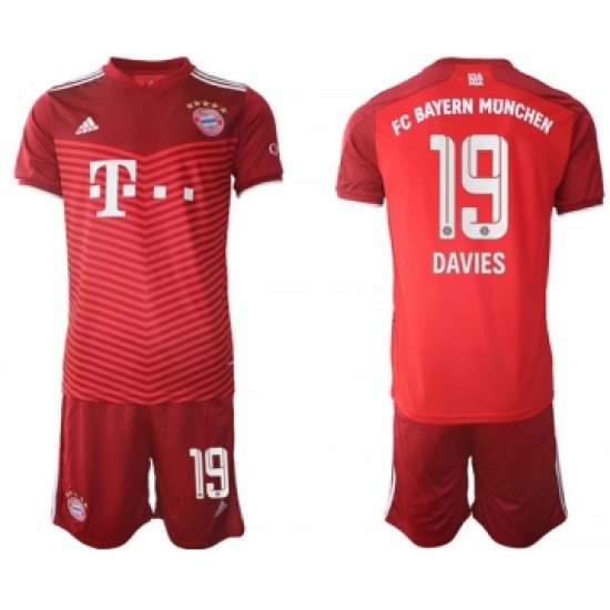 Men's FC Bayern München #19 Alphonso Davies Red Home Soccer Jersey With Shorts