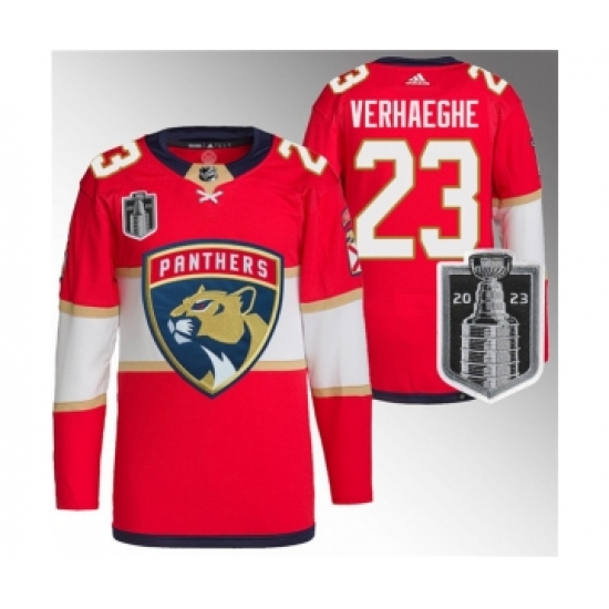 Men's Florida Panthers #23 Carter Verhaeghe Red 2023 Stanley Cup Final Stitched Jersey