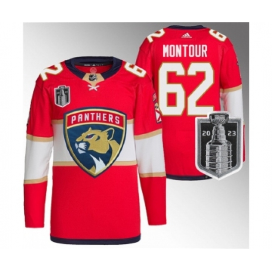Men's Florida Panthers #62 Brandon Montour Red 2023 Stanley Cup Final Stitched Jersey