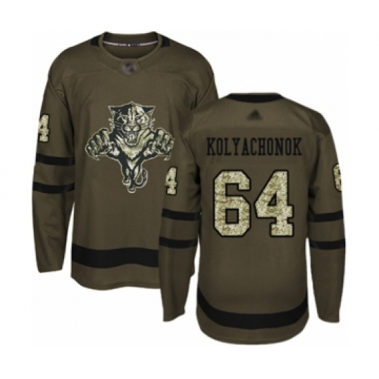 >Men's Florida Panthers #64 Vladislav Kolyachonok Authentic Green Salute to Service Hockey Jersey