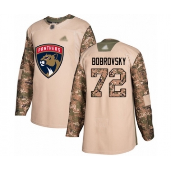 >Men's Florida Panthers #72 Sergei Bobrovsky Authentic Camo Veterans Day Practice Hockey Jersey