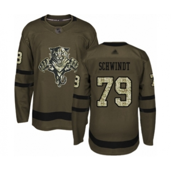 >Men's Florida Panthers #79 Cole Schwindt Authentic Green Salute to Service Hockey Jersey