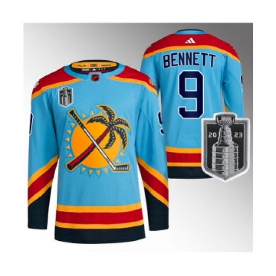 Men's Florida Panthers #9 Sam Bennett Blue 2023 Stanley Cup Final Reverse Retro Stitched Jersey
