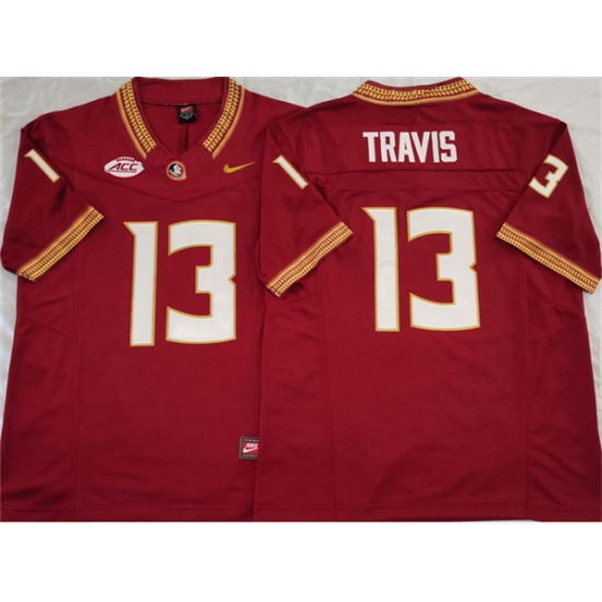 >Men's Florida State Seminoles #13 Jordan Travis Red 2023 F.U.S.E Stitched Jersey