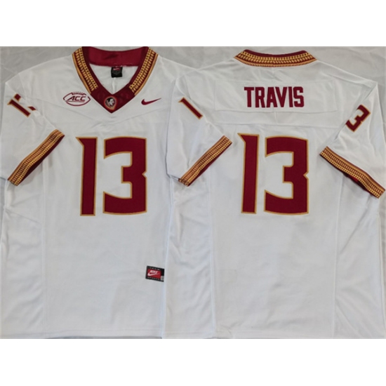 >Men's Florida State Seminoles #13 Jordan Travis White 2023 F.U.S.E Stitched Jersey