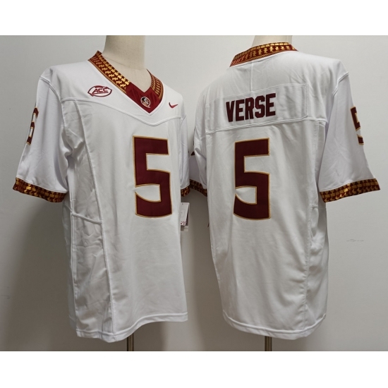 >Men's Florida State Seminoles #5 Jared Verse White 2023 F U S E Stitched Limited NCAA Jersey
