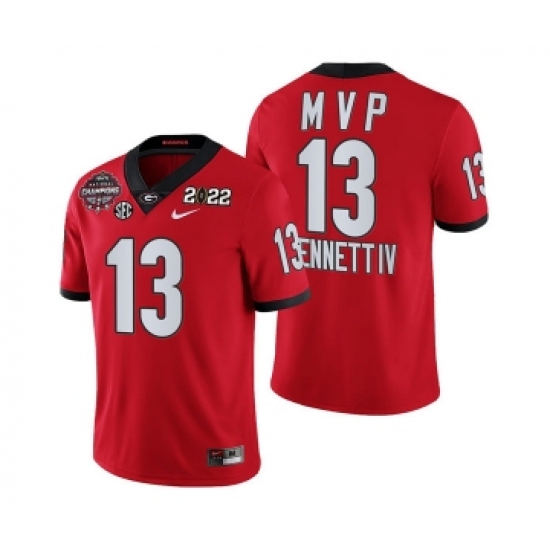 Mens Georgia Bulldogs #13 Stetson Bennett IV Red 2021-22 National Champions College Football Game MVP Jersey