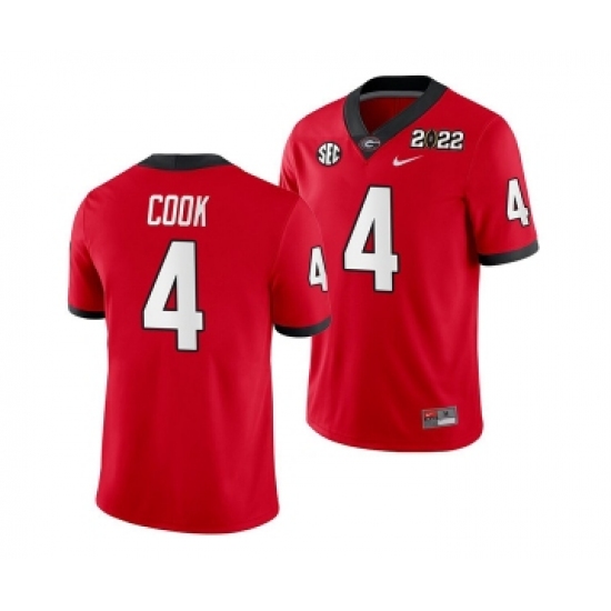 Men’s Georgia Bulldogs #4 James Cook 2022 Patch Red College Football Stitched Jersey