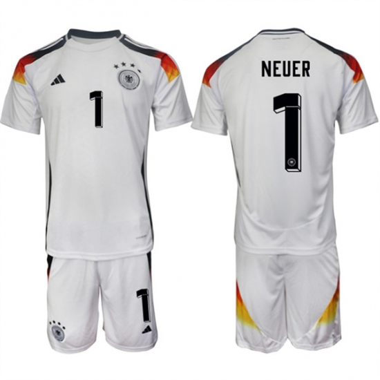 >Men's Germany #1 Manuel Neuer White 2024-25 Home Soccer Jersey Suit
