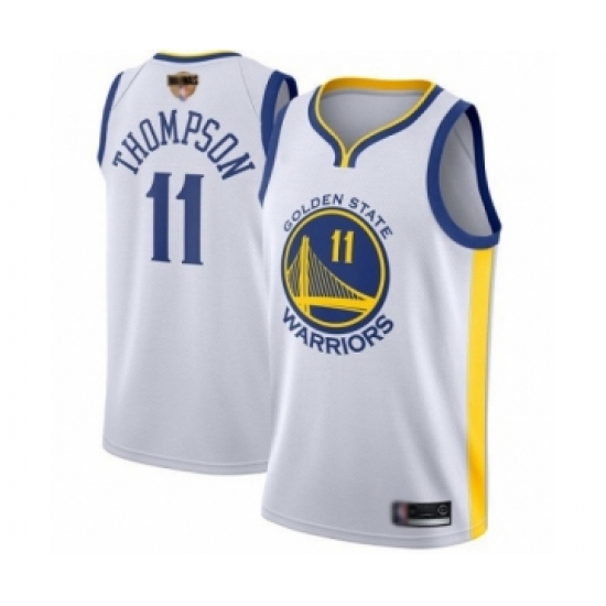 >Men's Golden State Warriors #11 Klay Thompson Swingman White 2019 Basketball Finals Bound Basketball Jersey - Association Edition
