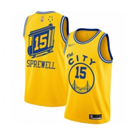 Youth Golden State Warriors #15 Latrell Sprewell Yellow Swingman 2019 Basketball Finals Bound Jersey - Earned Edition