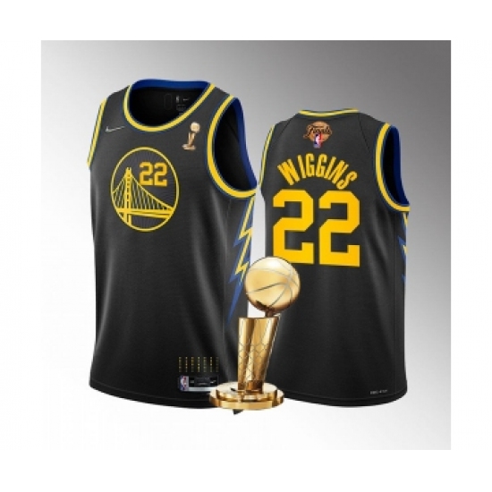 Men's Golden State Warriors #22 Andrew Wiggins Black 2022 NBA Finals Champions Stitched Jersey