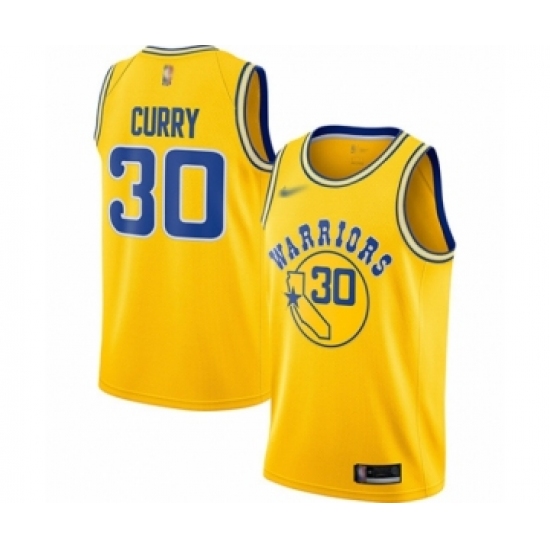 >Men's Golden State Warriors #30 Stephen Curry Authentic Gold Hardwood Classics Basketball Jersey