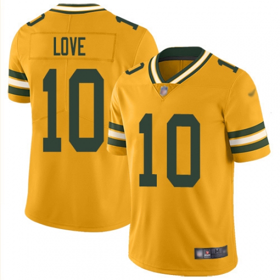 Youth Green Bay Packers #10 Jordan Love Yellow Stitched NFL Limited Rush Jersey