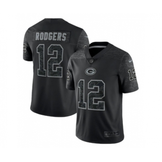 Men's Green Bay Packers #12 Aaron Rodgers Black Reflective Limited Stitched Football Jersey