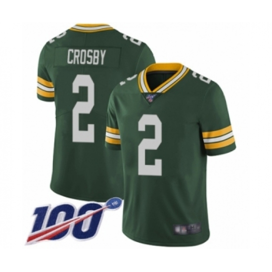 Men's Green Bay Packers #2 Mason Crosby Green Team Color Vapor Untouchable Limited Player 100th Season Football Jersey
