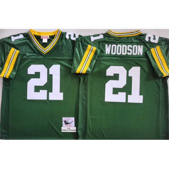 Men's Green Bay Packers #21 Charles Woodson Green Throwback Stitched Football Jersey